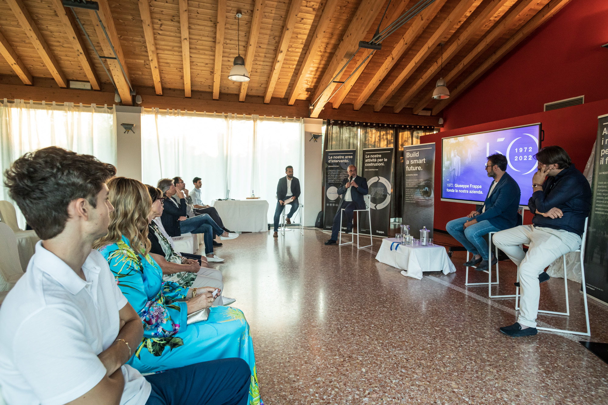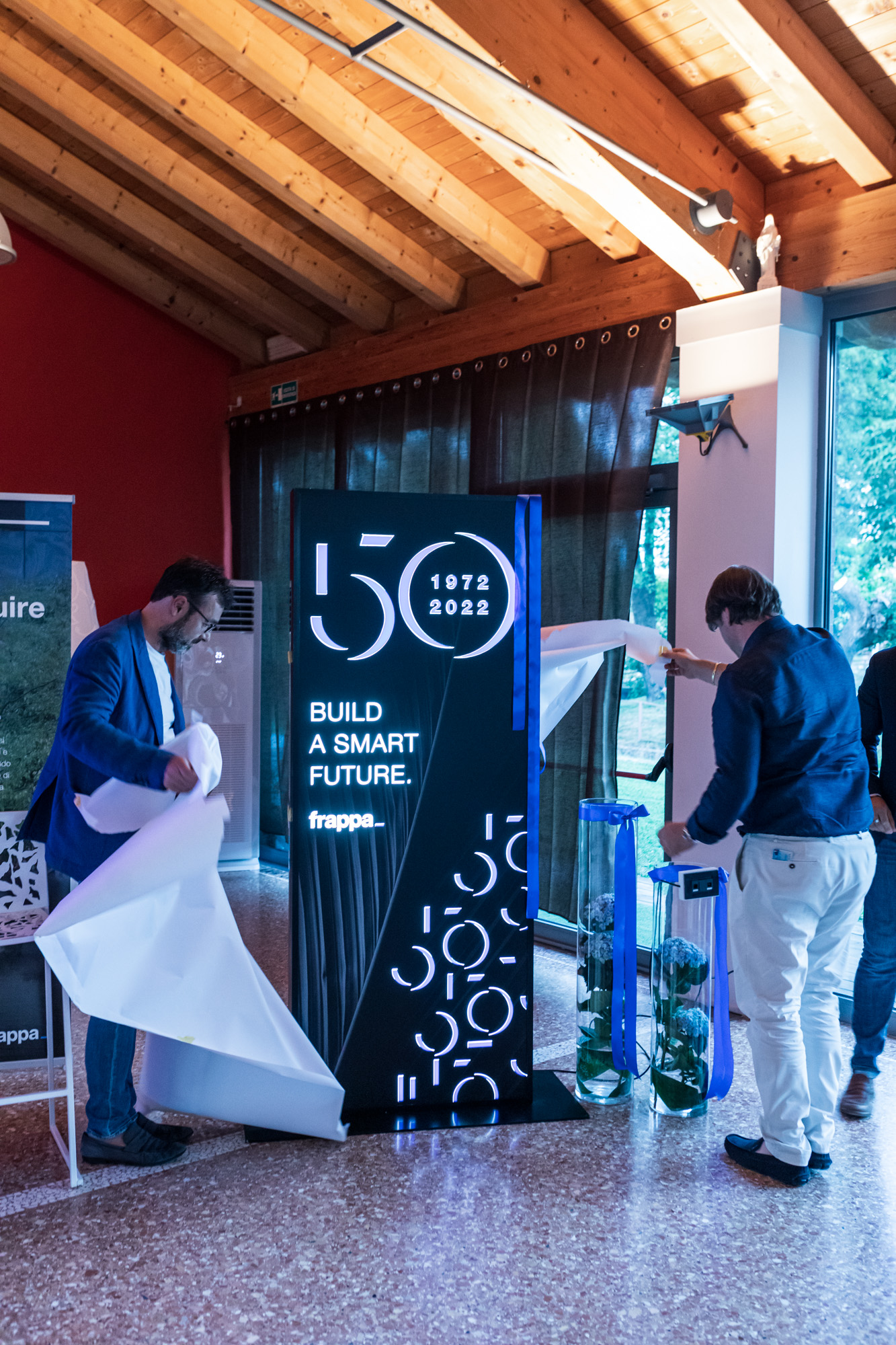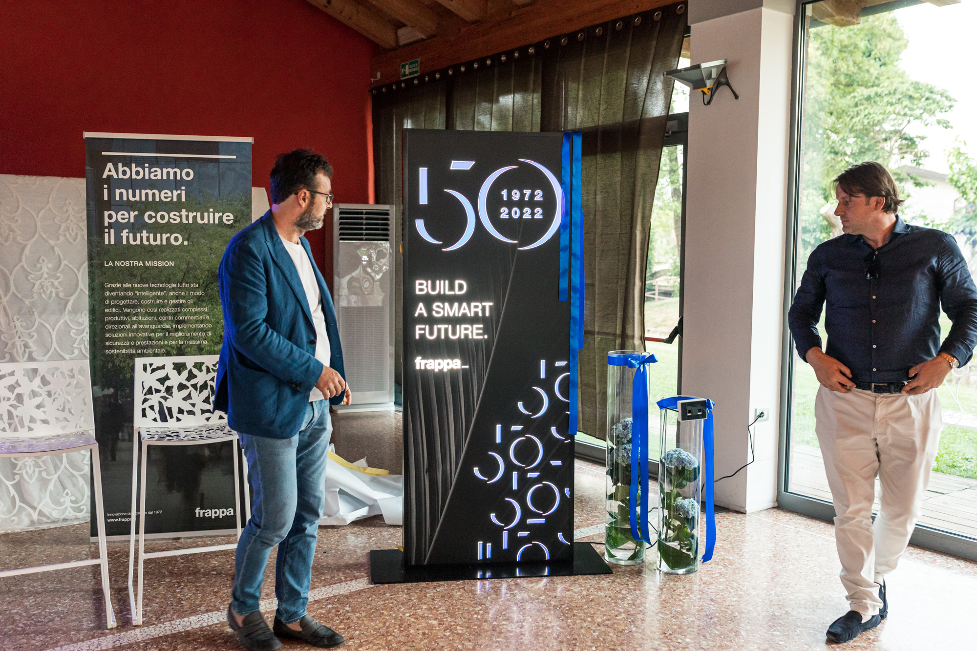 La festa si è tenuta a Camino al Tagliamento venerdì 22 luglio, durante questa splendida serata sono intervenute diverse figure pubbliche. Dopo la presentazione iniziale hanno preso parola Sergio Emidio Bini – Assessore alle Attività produttive e Turismo della Regione autonoma Friuli Venezia Giulia, Guido Nardini – Sindaco di Codroipo, Nicola Locatelli – Sindaco di Camino al Tagliamento e infine i figli di Giuseppe Frappa, Riccardo e Renato, che hanno ricordato la nascita e lo sviluppo dell’azienda, ma anche il percorso di crescita che sta seguendo. Un ringraziamento a Riccardo Riccardi, Vicepresidente Assessore regionale alla salute, politiche sociali e disabilità delegato alla Protezione civile di Regione FVG, che non è potuto intervenire perché impegnato nella gestione dell’emergenza incendi che in questi giorni affligge la nostra Regione.