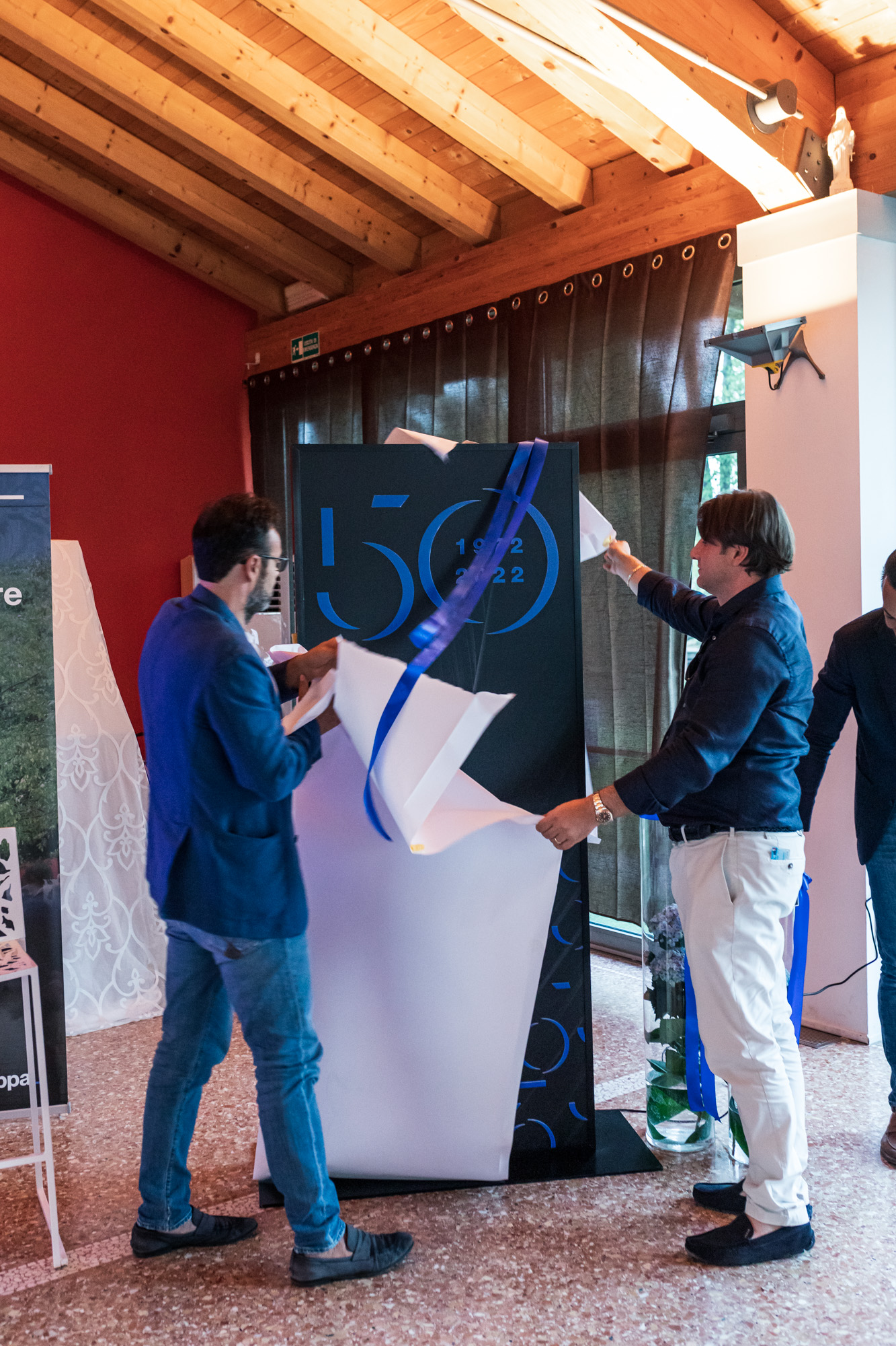 Dopo la proiezione del video che ha ripercorso tutte le tappe di Frappa dalla fondazione ad oggi, è stato scoperto il totem commemorativo dei 50 anni.